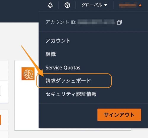 このようなメニューが出てくるので、ここで「請求ダッシュボード」をクリックします。