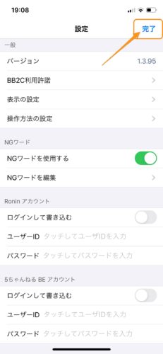 入力が完了したら画面を戻っていって、設定画面で「完了」をタップします。