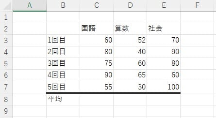 平均値を出したいセル(C7)にカーソルをあわせて、以下の順に入力してみてください。