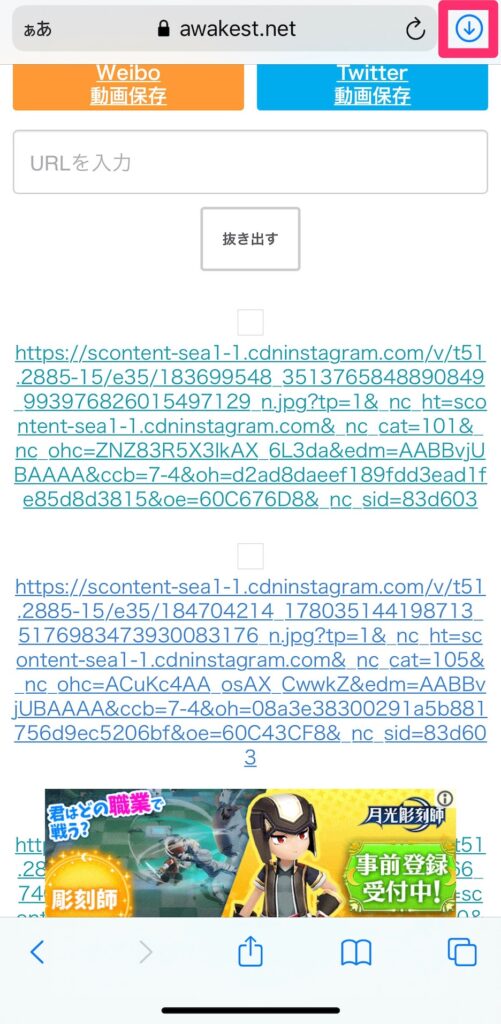 すると投稿の画像が表示され、その下にダウンロード用のURLが表示されます。