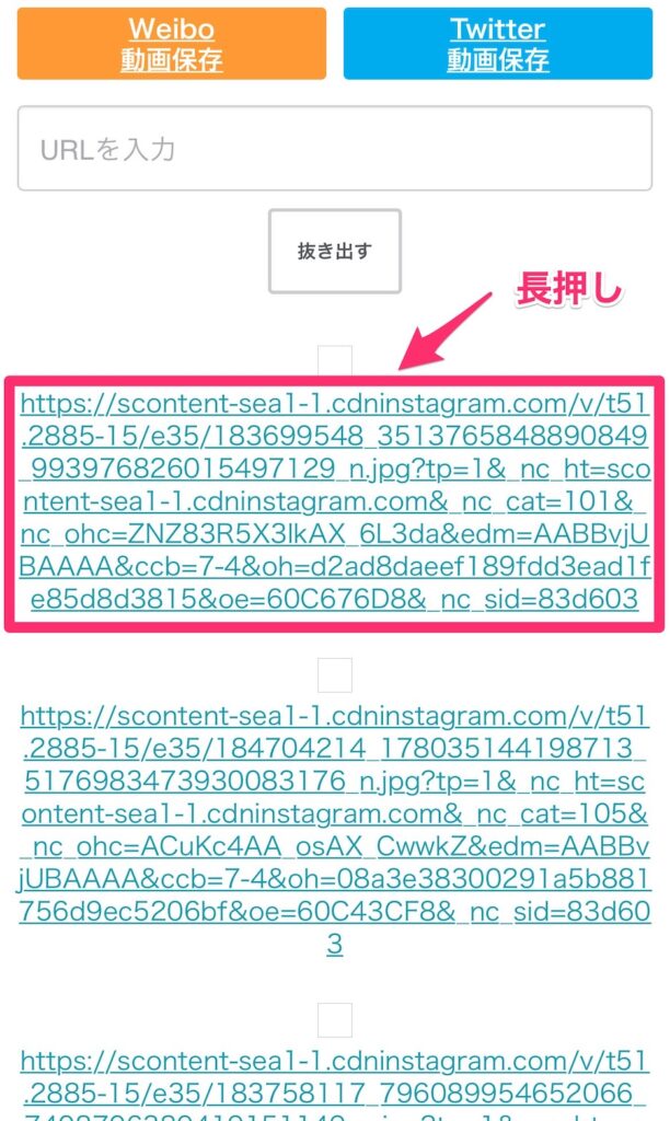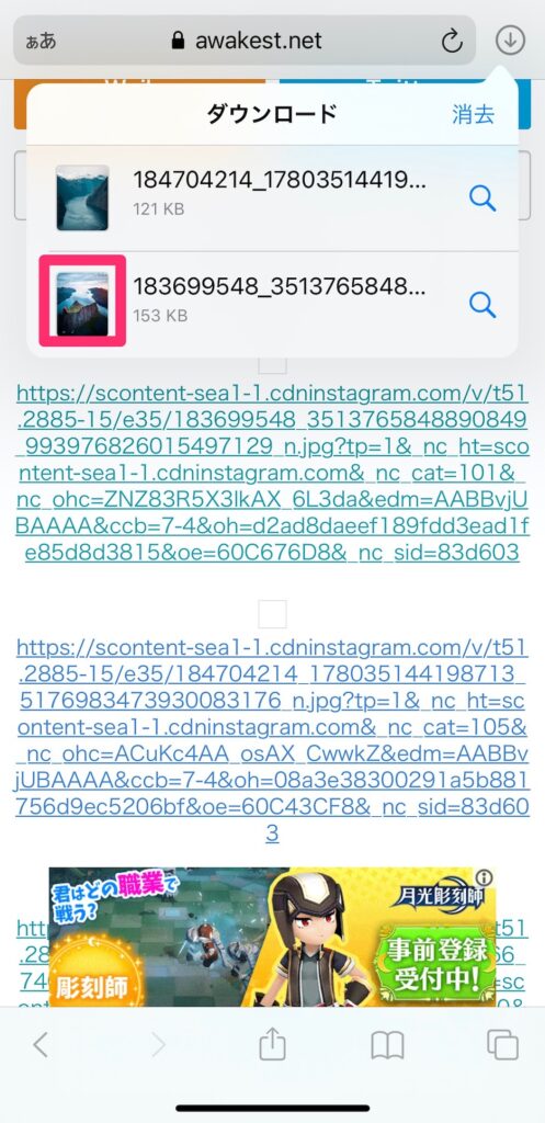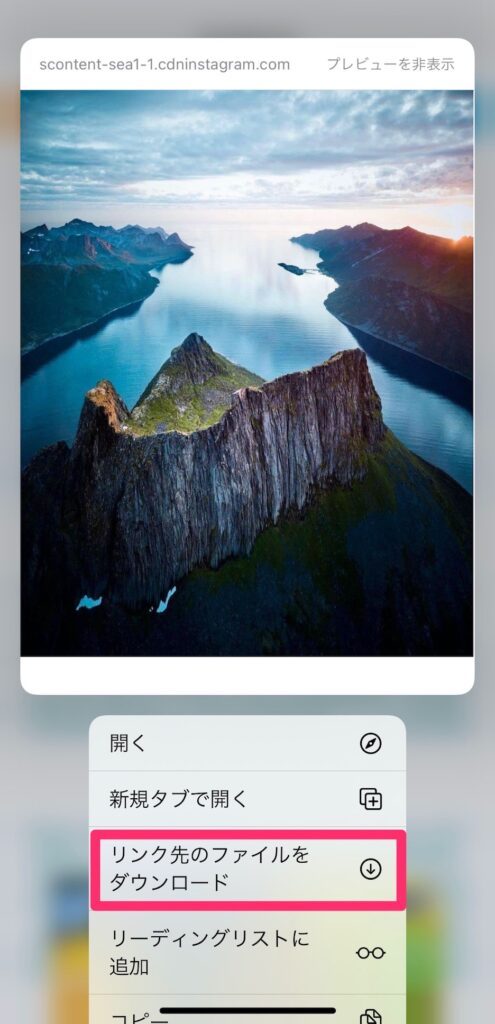 以上です。画像が複数ある場合は、URLを長押し→ダウンロードを画像ごとに行います。