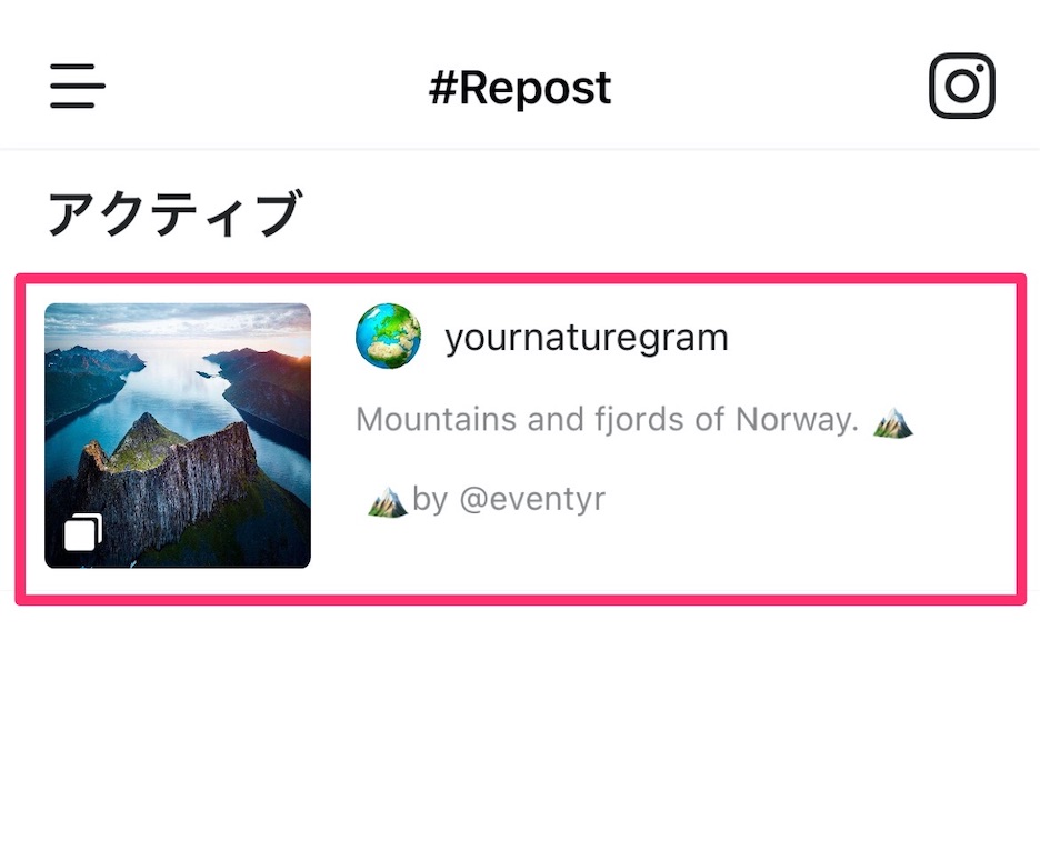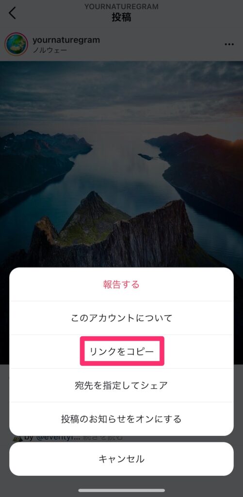 インスタアプリで、リポストしたい画像のリンクをコピー