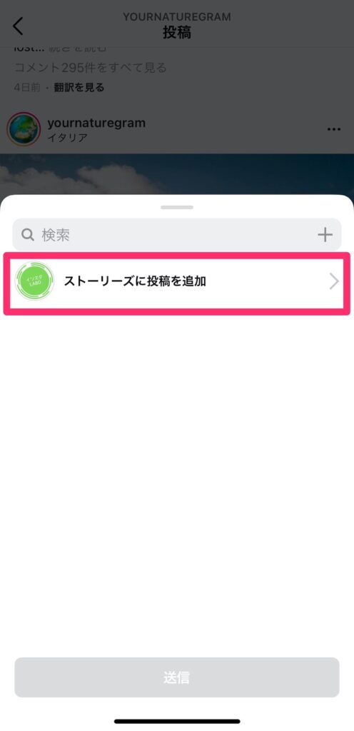 このあとインスタの投稿画面に遷移しますが、投稿はしなくて大丈夫です。