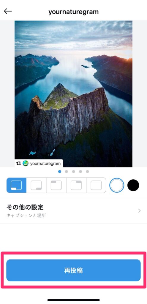 下側に「再投稿」のボタンが表示されるので、タップします。