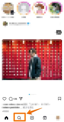 インスタグラムでは、虫眼鏡のようなマークが「検索」になりますよ!