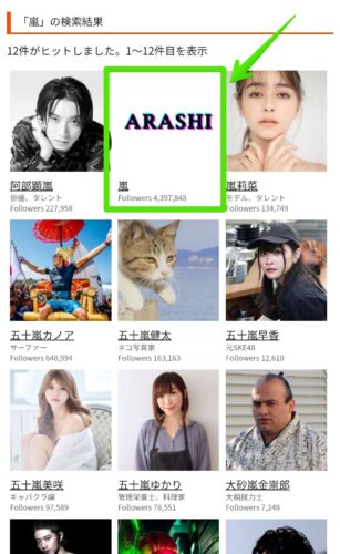 「嵐」という文字を含む、芸能人アカウントが出てきます。