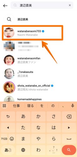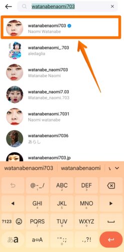 正しいユーザーネームが入力されていれば、一番上に公式アカウントが出てきます。