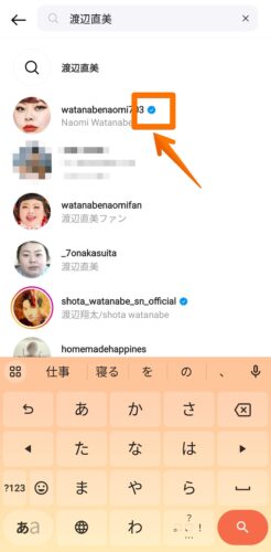 ユーザーネームが不明な場合:名前で検索し公式バッジを確認