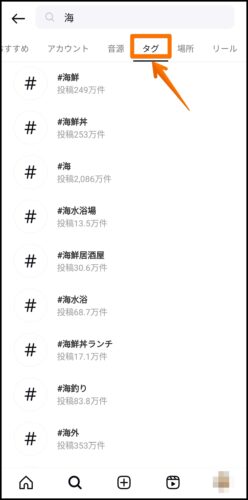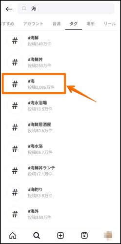 実際に、自分の投稿が該当するハッシュタグで表示されるかは、次の手順で確かめることができます。