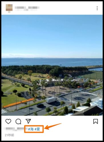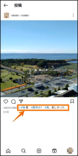 例えば、上のような写真を投稿する場合、関連した「海」「夏」といったハッシュタグをつけるのがおすすめです。