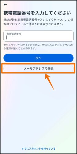 次に、電話番号を使用してアカウントを登録する方法を解説していきます。