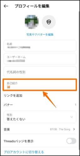 「プロフィールを編集」をタップすると、設定画面が出ます。