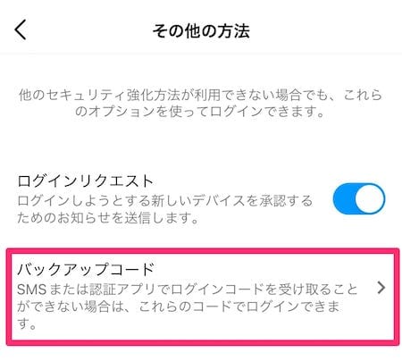 「ログインコードを取得方法」の3通りの方法をタップして、全てオフにします。
