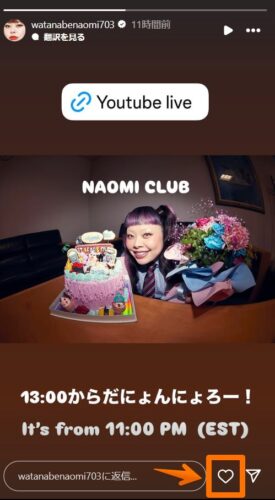 画像のように「ハートマーク」や「吹き出しマーク」から、いいね・コメントを行ってください。