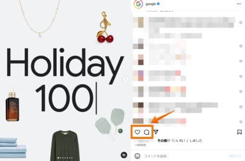 いいねやコメントも、アプリの時と同じ手順で行うことができます。