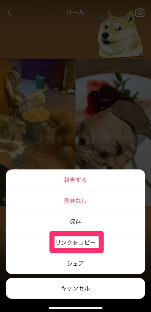 インスタアプリで、リポストしたい動画のリンクをコピー