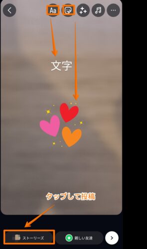 ストーリーには文字やスタンプを入れられます。