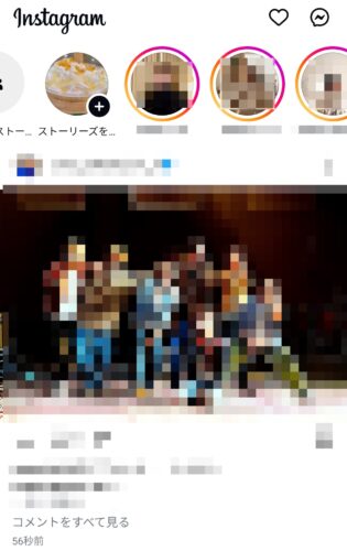 インスタグラムのタイムラインを開きましょう。