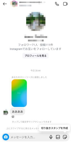 インスタグラムでは、相手のストーリーにリアクションができます。