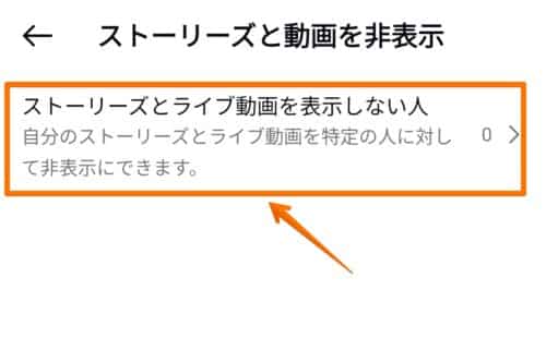 「ストーリーズとライブ動画を表示しない人」をタップしてください。
