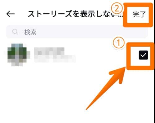 自分のストーリーを表示したくないユーザーにチェックを入れて、完了をタップしてください。