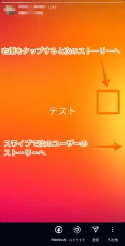 画面の右側をタップすると、同じユーザーの次のストーリーを見ることができ、スワイプすることで次のユーザーのストーリーを見ることができます。