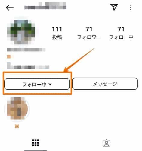 ②フォロー中をタップ