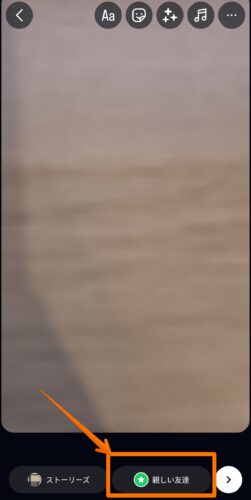 「親しい友達」に投稿する場合は、投稿画面で「親しい友達」をタップしてください。
