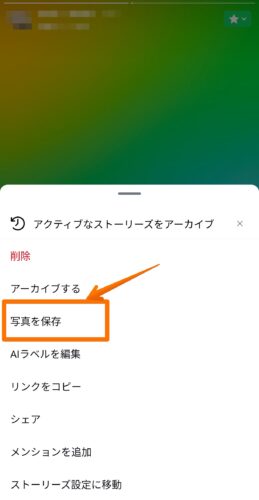 自分のストーリーは、以下の方法で保存ができます。