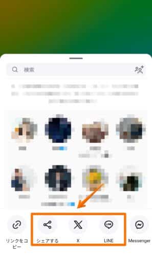 LINE・Xなど、シェアしたい媒体を選択し、画面の指示に従ってシェアします。