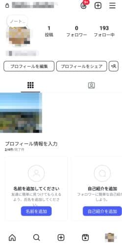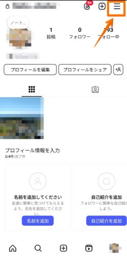 インスタグラムのプロフィール画面を開きます。