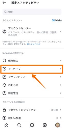 「Instagramの利用方法」から「アーカイブ」を選択してください。