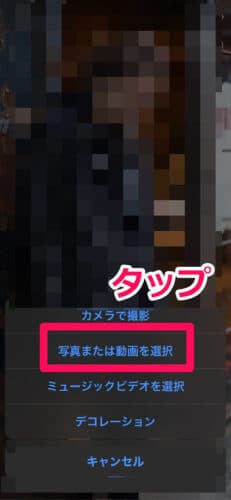 2.プロフィール背景画面→「編集」→「写真または動画を選択」の順にタップ