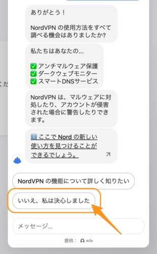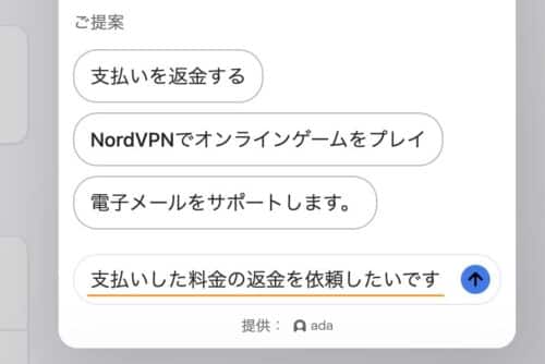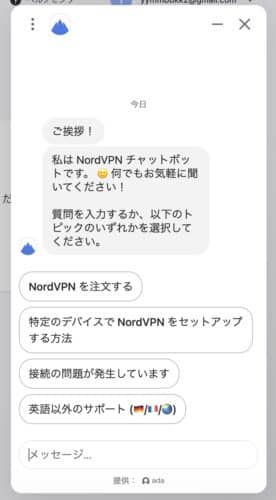 NordVPNのページから契約した場合、同様にNordVPNのチャット画面から返金の依頼が可能です。