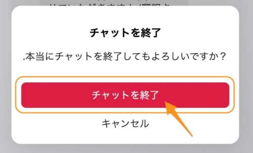 完了したら、「チャットを終了」のボタンを押して終了しましょう。