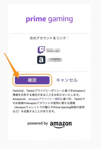すると、このようにTwitchアカウントとAmazonアカウントの両方が表示され、「この2つのアカウントを連携しますが、OKですか?」という確認画面が出てきます。