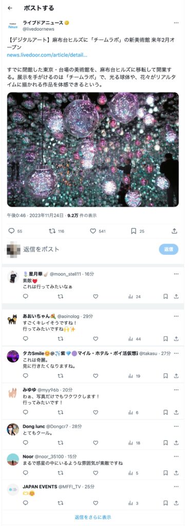 フォロワー数の多いツイートに、無意味なリプライを大量に飛ばすことによってインプレッションを稼ぎ収益化するという手法が流行し、リプライ欄はカオス状態になってしまっています。