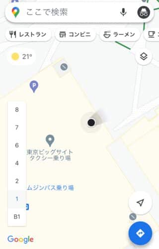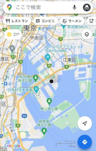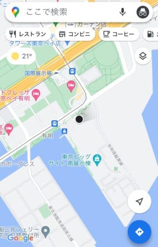 例えば、こちらは東京・有明のビッグサイトでGoogleマップを開いて、位置情報を確認している画面です。